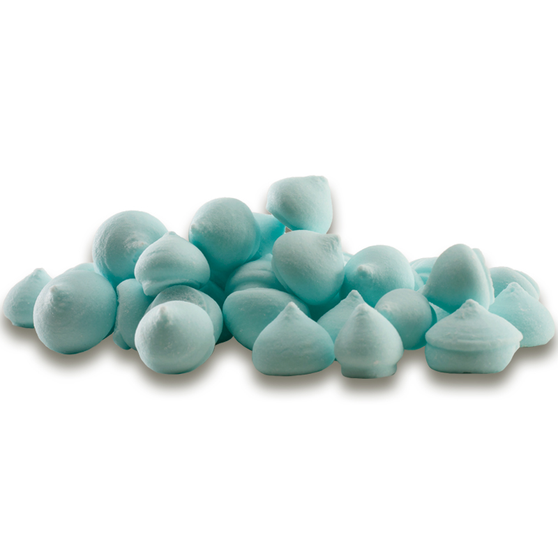 Baiser aus blauem Zucker. Ideal zum Dekorieren von Torten oder Cupcakes auf einfache Weise. Verleihen Sie Ihren Dekorationen mit diesen Baisers eine verspielte Note. Glutenfrei hergestellt und mit natürlichen Farbstoffen. Sie haben ein angenehmes Himbeeraroma.