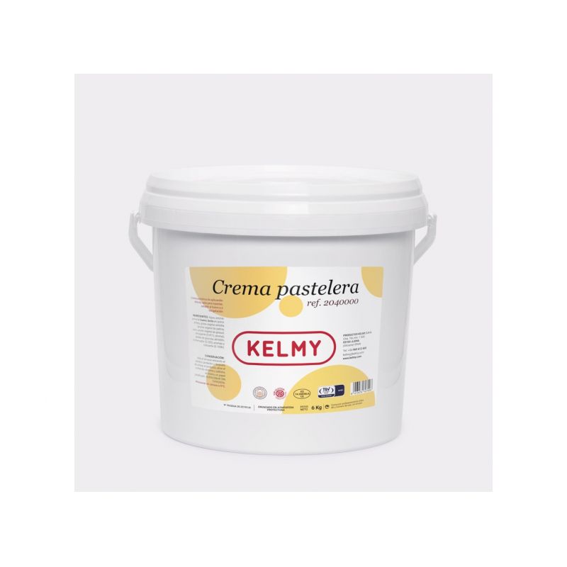 Kelmy Crema Pastelera in praktischem 6 kg Eimer fertige Füllung zum Backen, die dir eine Menge Arbeit erspart — kein Kochen oder komplizierte Vorbereitungen.