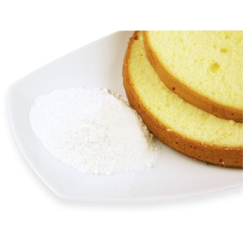 Zucker 44%, Reismehl, Maisstärke, Kartoffelstärke, entfettetes MILCHpulver, Emulgatoren: E 475 (Polyglycerinester von Speisefettsäuren), E 433 (Polyoxyethylen-Sorbitan-Monooleat); Backtriebmittel: E 450 (Dihydrogenphosphate), E 500 (Natriumcarbonate); Verdickungsmittel: E 466 (Natriumcarboxymethylcellulose), E 412 (Guarkernmehl); Salz, Farbstoff: E 160a (Carotine). Kann Spuren von Ei, MILCH, SOJA und NÜSSEN enthalten.