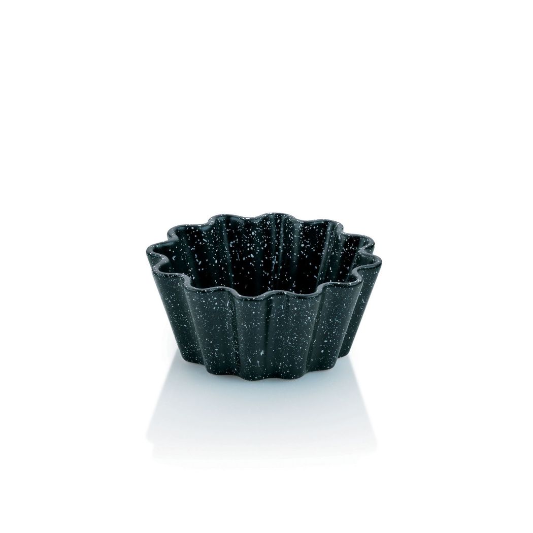 Miska na dortíky Emilia je vyrobena v imitaci černého mramoru a opatřena nepřilnavým povrchem Xylan Plus. Má rozměry 12,5x5,5 cm. Snadno se umývá. Je vhodná pro přípravu sladkých, slaných, studených i teplých dezertů. Kamenina je vysoce odolná vůči teplotám až do 200 stupňů Celsia.