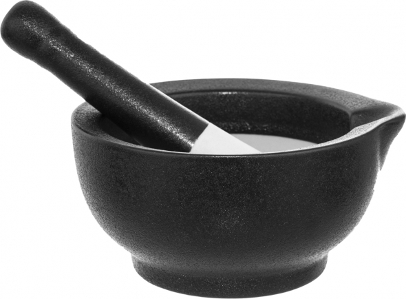 Der Innenraum des Mörsers und die Unterseite der abgerundeten Kopfhälfte sind nicht glasiert, wodurch ein effektiveres Zerkleinern ermöglicht wird.