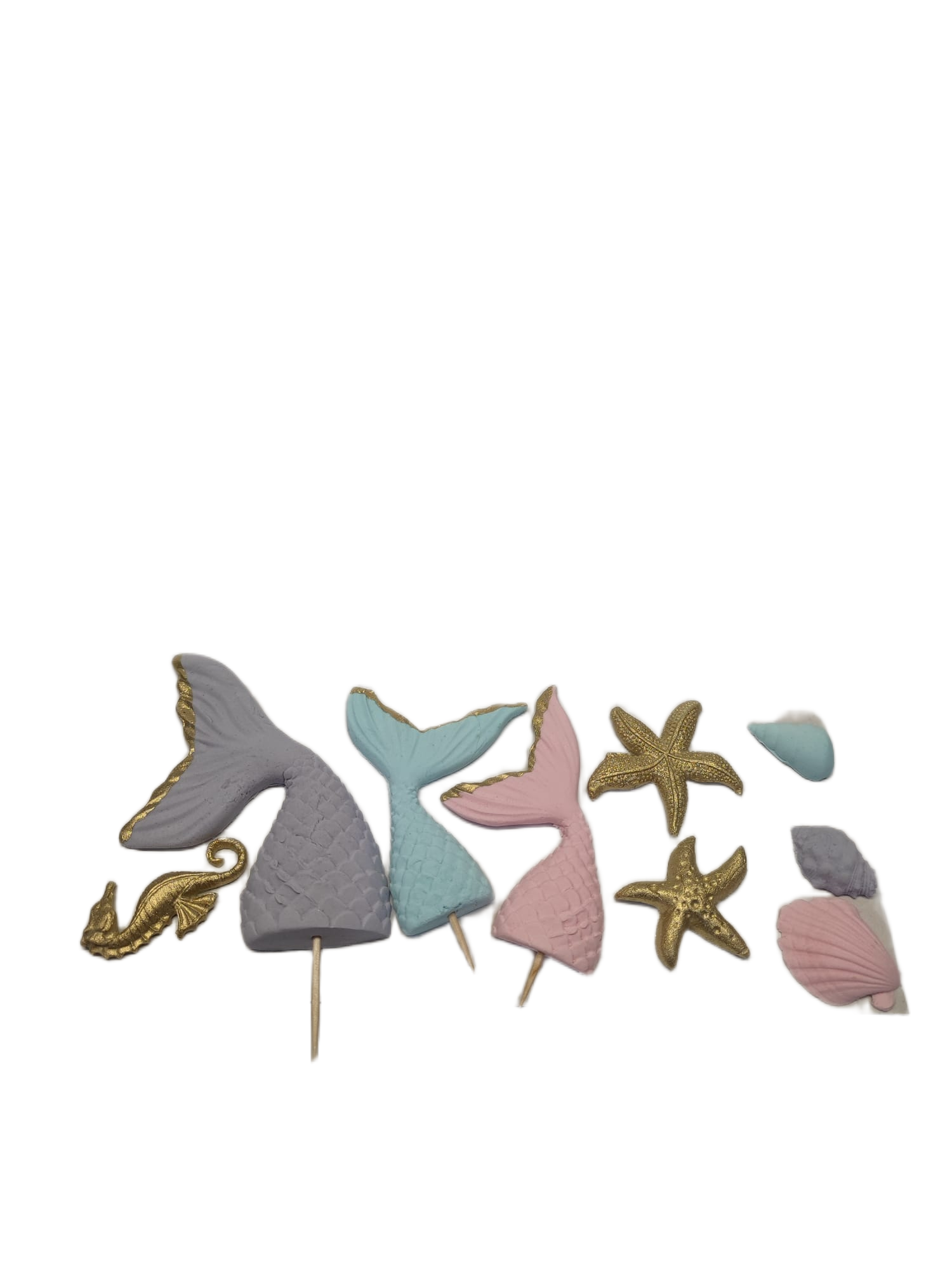 Zápich mit dem Motiv schwänzen der Meerjungfrau ist eine Dekoration, die deine Torte sofort in ein Unterwasserreich verwandelt. Jeder Schwanz ist handgeformt bis ins kleinste Detail – feine Textur der Schuppen, schöne Formen, pastellfarbene oder schimmernde Farben und elegante Linien, die an eine echte märchenhafte Welt der Meerjungfrauen erinnern. Der Zápich wirkt luxuriös, verspielt und ist der ideale Mittelpunkt einer Meerestorte.