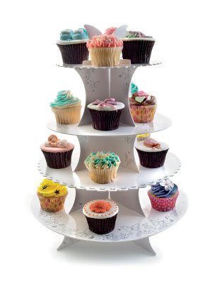 Ständer, der Ihre Backkünste optimal zur Geltung bringt. Die Präsentation der Leckereien ist fast genauso wichtig wie der Geschmack. Präsentieren Sie also Ihre Muffins und Cupcakes so wie es sich gehört. Ein vierstöckiger Ständer mit feiner Verzierung ist für diesen Anlass wie geschaffen. Auf den Ständer passen bequem 16–20 Stück.