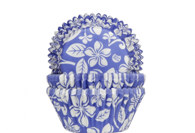 Muffinförmchen bestehen aus Backpapier. Sie haben eine Blau-Weiß-Dekoration. Im Set befinden sich fünfzig Förmchen mit den Maßen 50 x 33 mm.