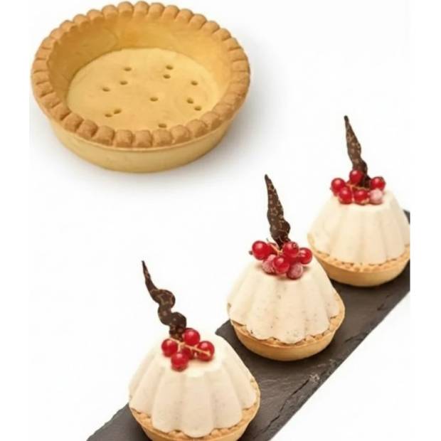 Ein großer Vorteil ist ihre Vielseitigkeit – Sie können die Förmchen mit Schokoladenganache, Mascarpone-Ccreme, Schlagsahne, Pudding oder frischen Früchten füllen. Vorgefertigte Mürbeteigböden sparen Ihnen Backzeit und garantieren gleichzeitig immer das perfekte Ergebnis ohne das Risiko von Rissen oder Anhaften. Sie sind zu 8 Stück verpackt, was praktisch für kleinere Feiern oder größere Catering-Veranstaltungen ist.