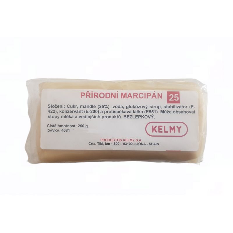 cukr, mandle (25%), voda, glukózový sirup, stabilizátor E422, konzervant E200, protispékavá látka E551.