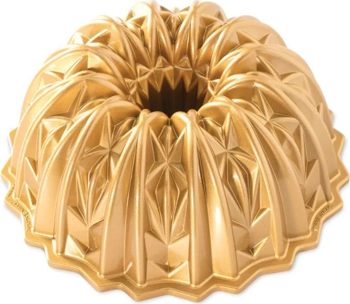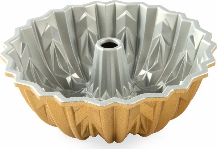 Außergewöhnlich hochwertige Gugelhupfform mit Kristalldesign. Eine interessante Form wird auf dem fertigen Produkt schön wiedergegeben. Der Gugelhupf erfordert außer einer einfachen Glasur keine Dekoration, kann aber als Grundlage für eine eigene farbige Komposition verwendet werden, für den perfekten Effekt. Die Antihaftbeschichtung erleichtert das Entfernen des gebackenen Produkts und die Reinigung der Form. Fetten Sie die Form vor jedem Gebrauch ein und bestäuben Sie sie leicht mit Mehl. Vor dem ersten Gebrauch diese in warmem Wasser mit Spülmittel reinigen und zu drei Vierteln mit Teig füllen. Um die Form optimal zu zeigen, schlagen Sie vor dem Backen mehrfach mit der Teig-gefüllten Form auf einen Tisch – der Teig füllt die Form gründlich aus, ohne Luftblasen. Verwenden Sie keine scharfen Werkzeuge, Chemikalien, scharfe Schwämme oder Drahtbürsten – sie können die Oberfläche der Form beschädigen. Von Hand reinigen – verlängert die Lebensdauer der Antihaftbeschichtung. Abmessungen 25,4 × 9,2 × 25,4 cm.