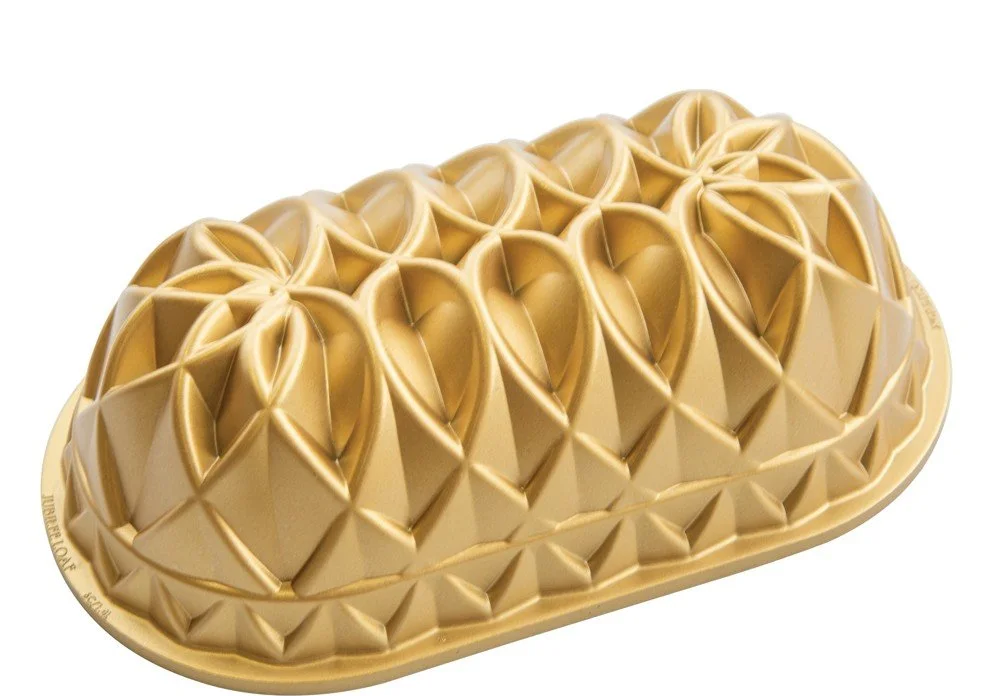 Form ist die Brotchenform in der Form eines geschliffenen Diamanten mit elegantem goldenem Design. Die Form besteht aus gegossenem Aluminium, das feine Details und hervorragende Backeigenschaften bietet. Die auffällige antihaftbeschichtete Innenfläche erleichtert die Verwendung der Backform. Das robuste Gehäuse aus gegossenem Aluminium verteilt Wärme schnell und gleichmäßig, um gleichmäßiges Backen zu unterstützen und eine delikate goldene Kruste zu erzielen. Nicht spülmaschinengeeignet. Abmessungen 29 x 16,2 x 7,3 cm.