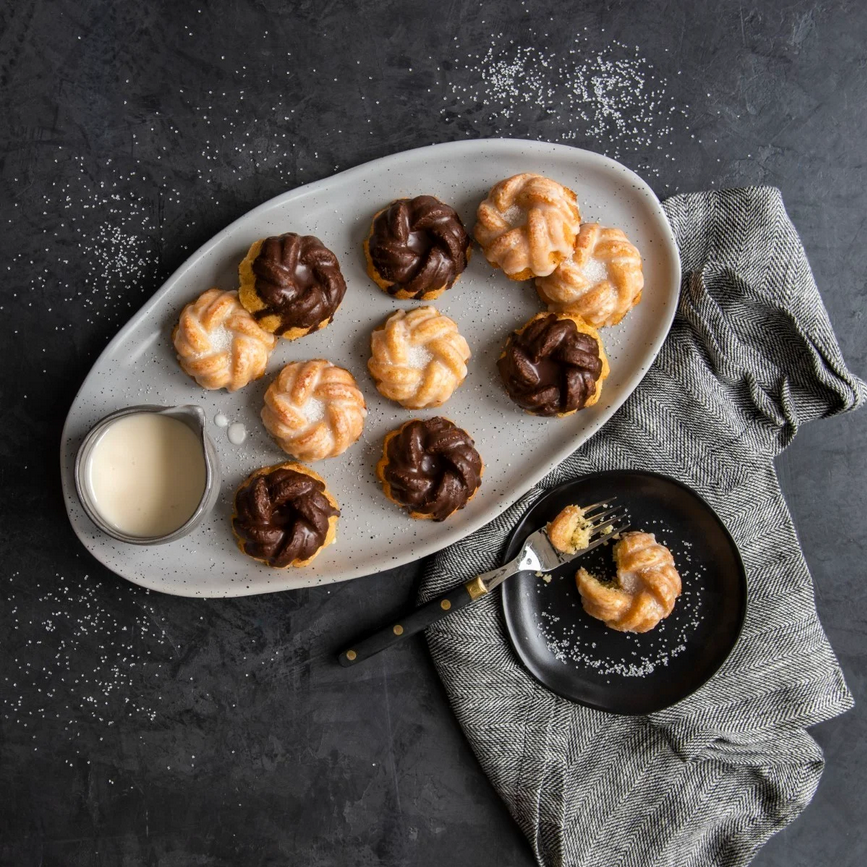 Form für Minibabkuchenformen 75 Jahre Nordic Ware, verschlungenes Design. Backen Sie damit 12 Stück Dessert.