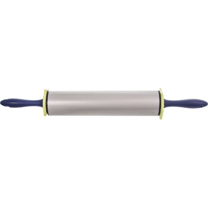 Rolle zum Teigrollen mit seitlichen Abstandhaltern, durch die Sie 4 Stärken des ausgerollten Teigs wählen können. Der Teig wird gleichmäßig und genau in den Stärken 2/4/6/8 mm ausgerollt. Durch Drehen der Rolle können Sie den Teig auch ohne Nutzung dieser Abstandhalter ausrollen. Material: Metall mit Antihaftbeschichtung, Kunststoff. Der Teig klebt nicht an der Oberfläche, Sie können nur eine geringe Menge Mehl verwenden. Pflegeleicht. Spülmaschinenfest. Abmessungen: Ø 6 cm, L 25/50 cm.
