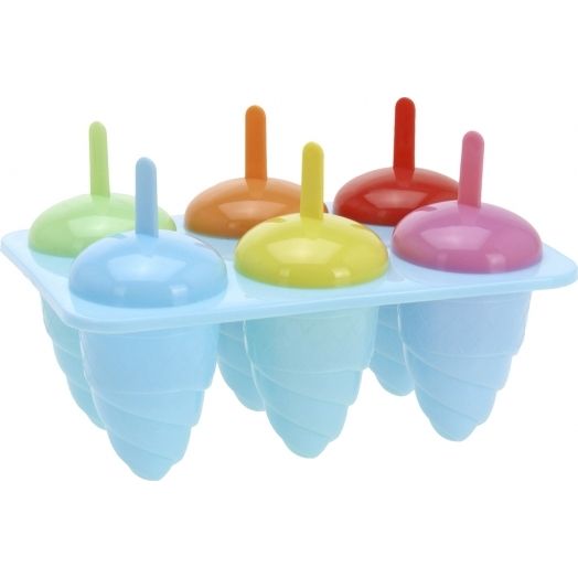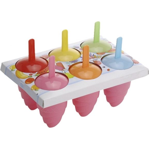 Forma na zmrzlinu Vám pomůže připravit osvěžující dobroty z ovoce, tvarohu, smetany... Materiál: plast. 6 tvořítek. Barevný assort. Rozměry: 20x14x14 cm, 1 tvořítko pr. 5,5 cm, v. 8 cm.