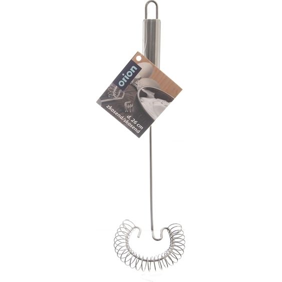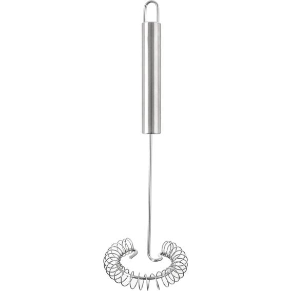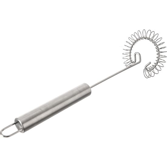 Schneebesen schräg für schnelles und einfaches Rühren von Hand. Die geschlagene Masse ist dank der Spirale hervorragend gelockert. Material: hochwertiger Edelstahl 430. Aufhängemöglichkeit. Abmessungen: Ø 8 cm, L 26 cm. Spülmaschinenfest.