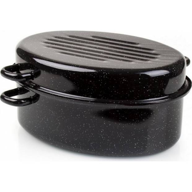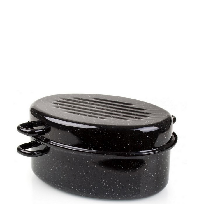 Entdecken Sie erneut die Aromen Ihrer Kindheit mit alter traditioneller Küche. Diese hochwertige, klassische emaillierte Bratpfanne ist geeignet zum Braten von Fleisch, Geflügel, Schmoren. Nach dem Kochen im Topf ist das Gericht viel schmackhafter und zarter als beim einfachen Braten in der Pfanne. Das Gericht behält Saft, wodurch es schmackhafter und leicht karamellisiert wird. Die langlebige emaillierte Beschichtung sorgt für eine hervorragende Wärmeverteilung für gleichmäßiges Bräunen von Braten und Pfannen. Bewahrt die Zartheit der Lebensmittel. Geeignet für Backofen, Gaskochfeld, Elektrisch (nicht für Induktion).