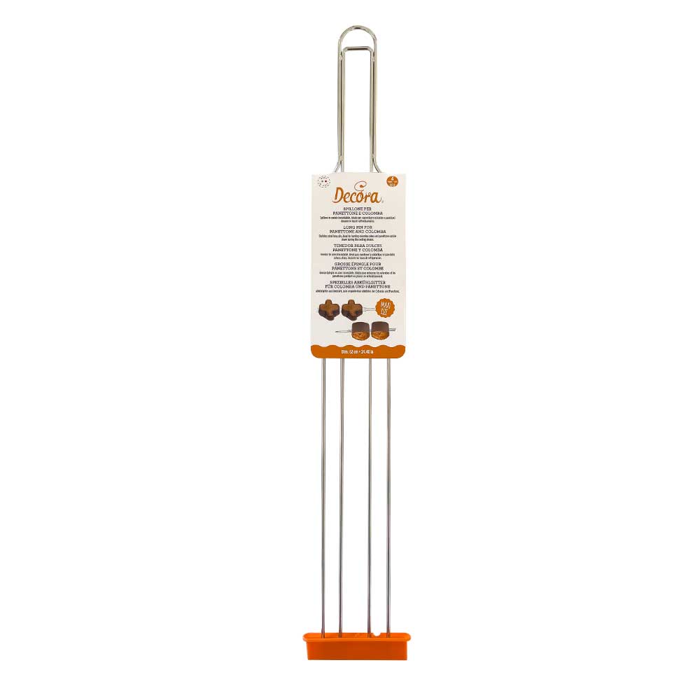 Kühlhilfe für italienische Desserts ist aus Edelstahl gefertigt. Sie wird verwendet, um Colomba oder Panettone umzudrehen. Sie bietet bessere Unterstützung während der Abkühlphasen dieses Gebäcks. Höhe 52 cm.