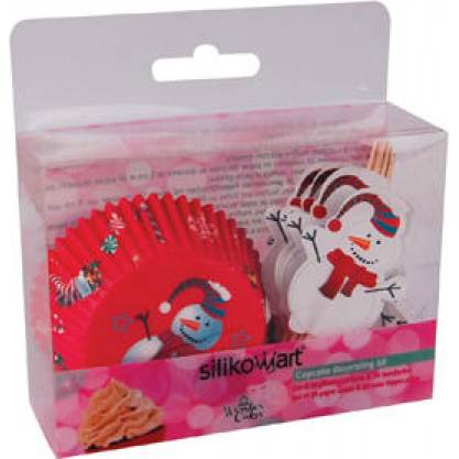 Backförmchen und Servierförmchen für Muffins mit Schneemann-Design und Dekorierstäbchen (24 Stück).
