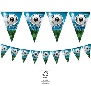 Geburtstagsgirlande mit Fußball-Aufdruck. Alles in schönen Pastellfarben. Es ist die perfekte Dekoration für einen Geburtstag oder eine Themenparty.