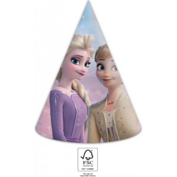 Geburtstagsmützen Frozen. Jede Packung enthält 6 lizenzierte Papierhutchen mit dem Motiv des beliebten Films.