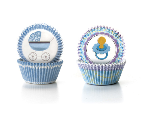 Hochwertige Muffinförmchen aus Pergamentpapier nehmen kein Fett auf und halten hohen Temperaturen stand. Sie eignen sich sowohl zum Backen als auch zum Servieren von Muffins und Cupcakes. Der Durchmesser der Förmchen beträgt 7,5 cm. Höhe: 4 cm. Eine Packung enthält 100 Förmchen. 50 Förmchen haben ein Motiv mit einem Kinderwagen, 50 mit einem Motiv eines Schnullers.