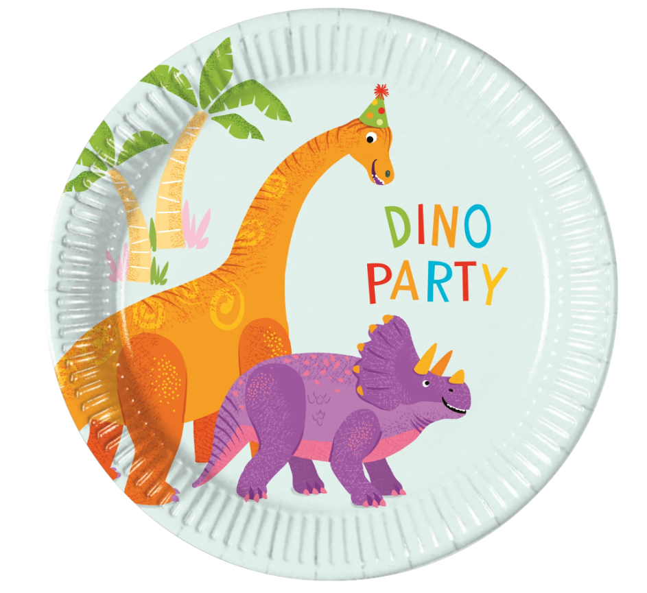 Papier-Teller Dinosaurier 19,5 cm, 8 Stück