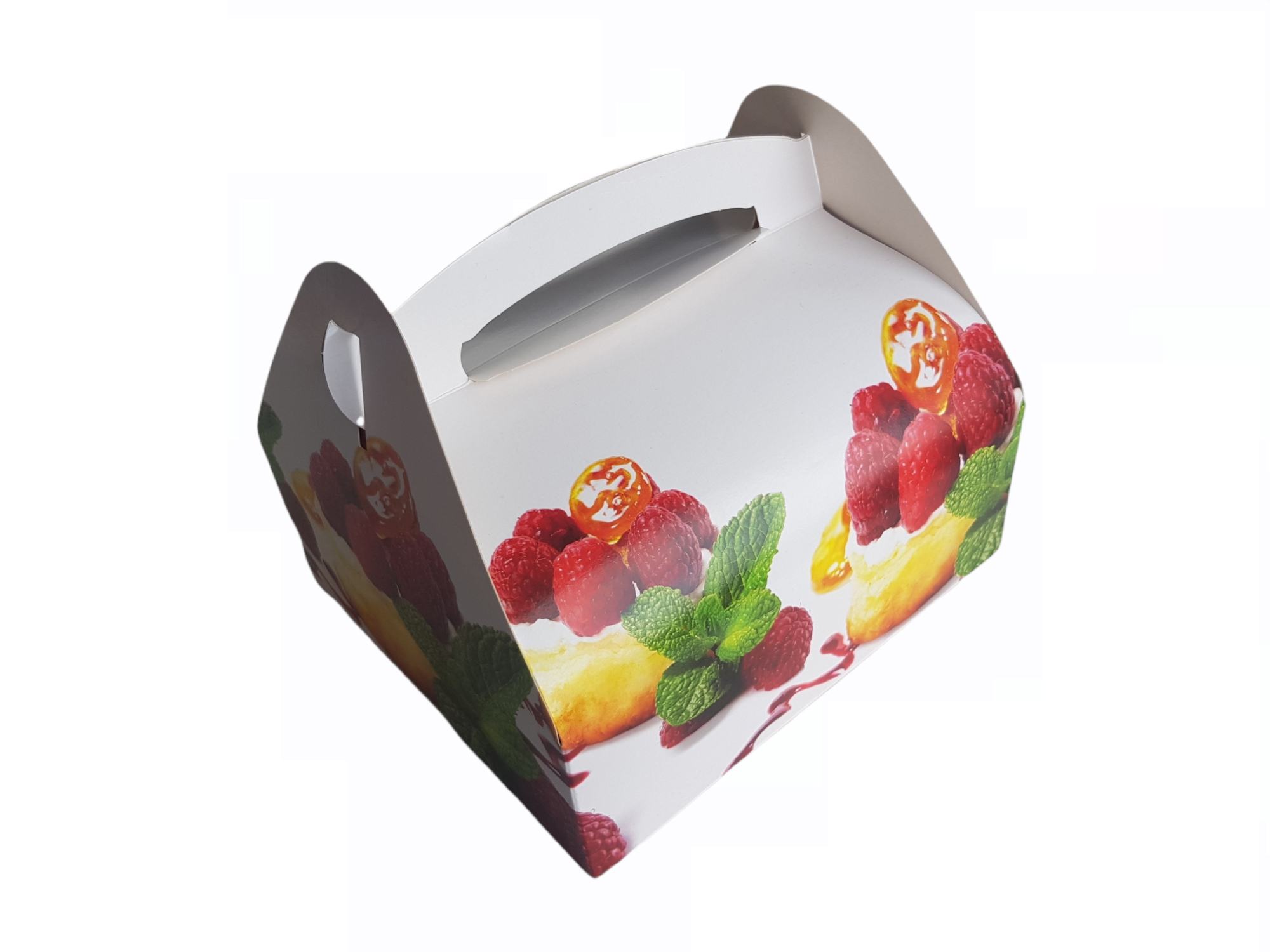 Papier-Taschenset Palermo ist aus festem Karton gefertigt, mit Druck verziert. Sie dient zum Transport von Desserts, Kuchen, Brötchen usw. Ihre Abmessungen betragen 20 x 18 cm.
