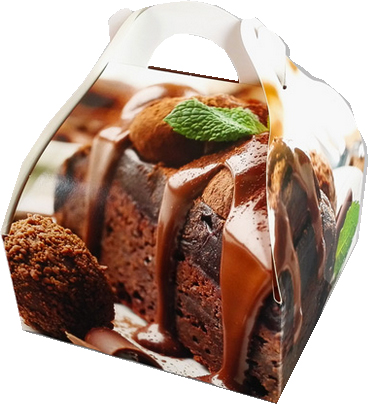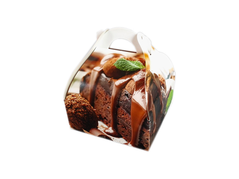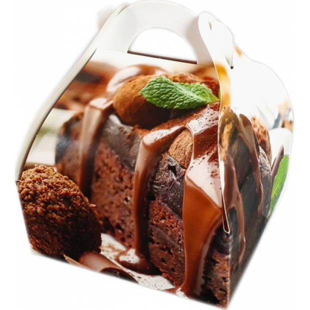 "Farbig bedruckte Tüte aus hochwertigem Hartpapier, geeignet für den sicheren Transport von verschiedenen Kuchen, Süßigkeiten, Muffins und anderen Süßwaren. Maße: 13,5 x 13,5 cm".