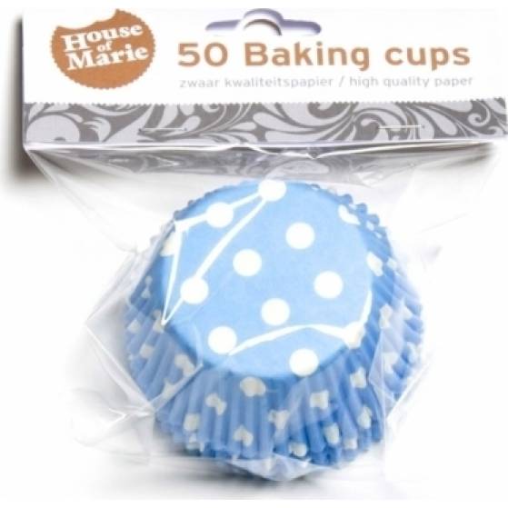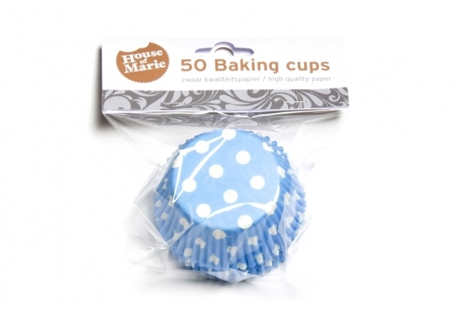 Ein Set mit 50 fantasievoll gestalteten Törtchen für die einfache und schnelle Zubereitung von Mini-Desserts. Blaue und weiße Cupcakes mit Tupfen-Dekoration.