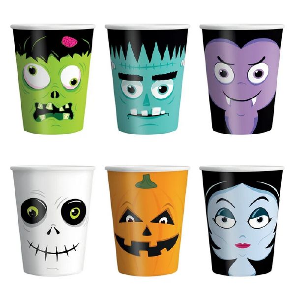 Pappbecher Halloween-Monster. Fassungsvermögen 220 ml, im Packung 6 Stück.