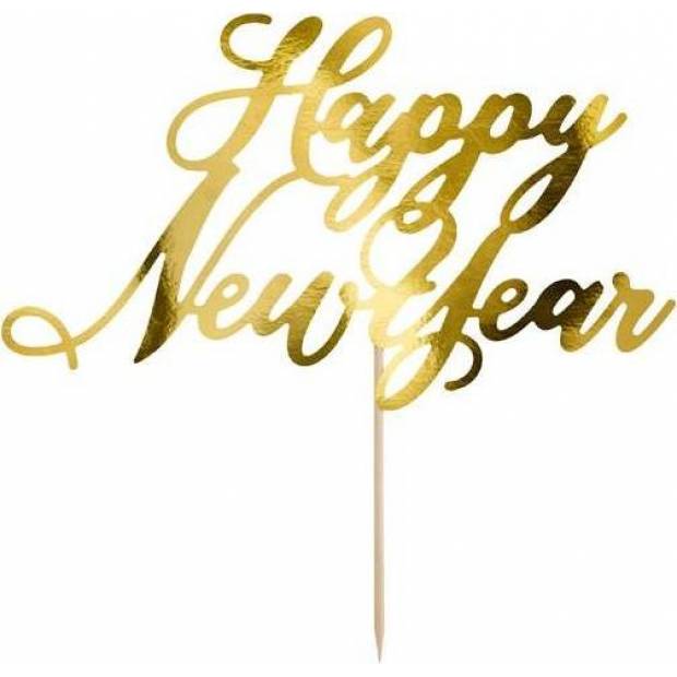 PartyDeco Aufsteckdeko für Kuchen Goldene Happy New Year KPT32-019M Kuchendekorationsartikel