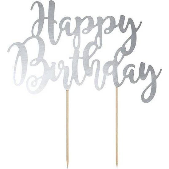 PartyDeco Aufsteckdeko für Kuchen Silber Happy Birthday KPT11-018M Tortendeko