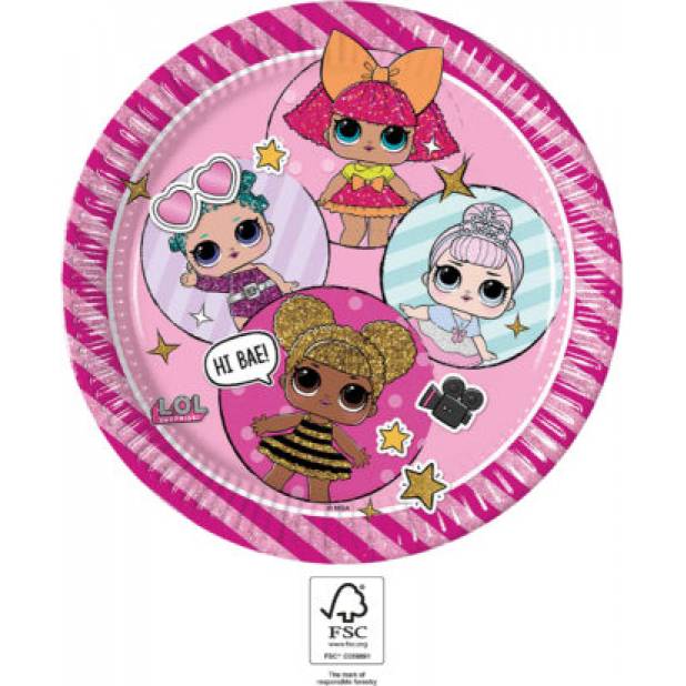 Papperteller für Partys L.O.L.. In der Packung 8 Stück. Durchmesser 23 cm.
