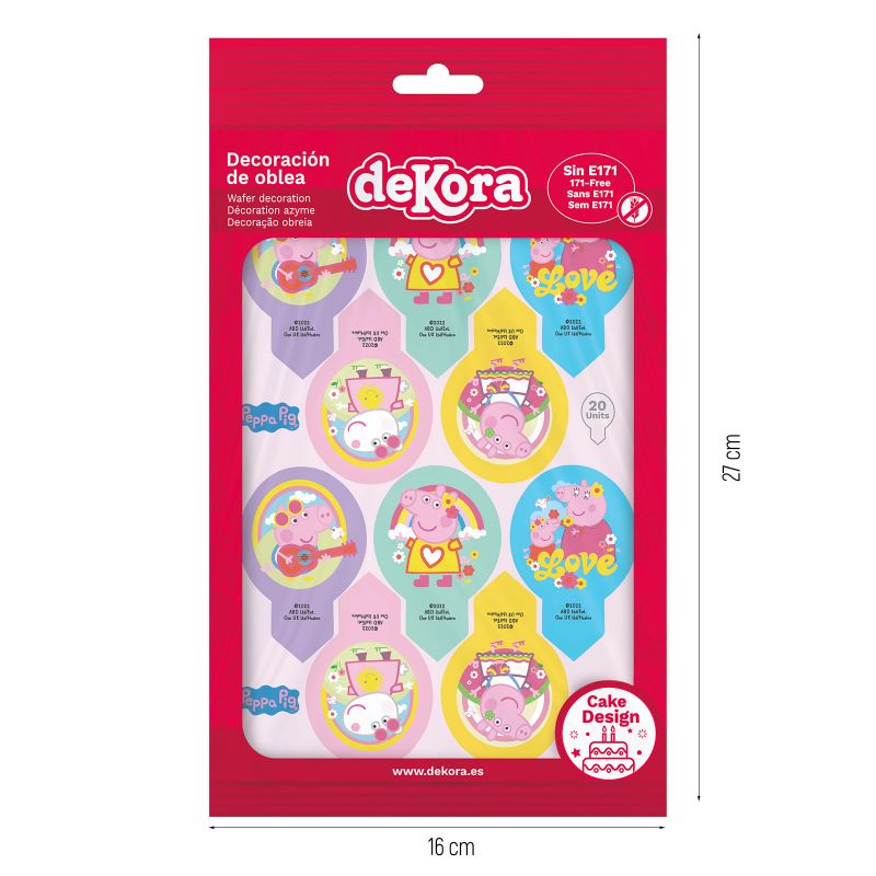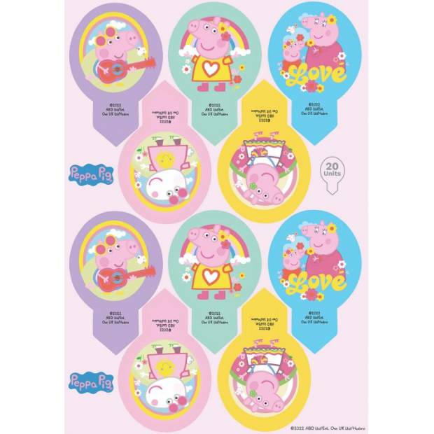 Vorgeprägte Oblate mit dem Motiv eines Schweinchens Peppa. Schnelle und einfache Möglichkeit, Ihre Cupcakes zu dekorieren. Abmessung: Breite 40 mm x Höhe 62 mm einschließlich dem Stift.