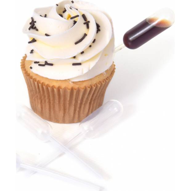 Pipette ist ein Kunststoffpflock, der mit dem Lieblingslikör gefüllt wird und dann in das Dessert gestochen wird. Pipetten sind beliebt bei Monodzie Desserts und Cupcakes. Wir bereiten unseren Lieblingslikör, Fruchtsaft oder Sirup bzw. Alkohol zu. Wir drücken die Pipette und tauchen die Spitze in die vorbereitete Flüssigkeit, dann lassen wir die Pipette vorsichtig los, damit sie sich füllt. Halten Sie sie sanft, wir können nur noch am dünnen Ende festhalten und die Pipette leicht in den Teig hineinstechen, nicht drücken, damit der Sirup nicht ausläuft. So eingestochen fließt kein Sirup heraus. Beim Verzehr reicht es, die Pipette zu drücken, dann gelangt der Sirup in den Kuchen; ziehen wir die Pipette nach dem Drücken heraus, würde sie wieder Flüssigkeit aufsaugen, falls sie freigegeben wird. Die Pipette ist Einweg, sie lässt sich aber auch gut reinigen. Die Pipette besteht aus Kunststoff, die Länge des Einstichs kann beliebig verkürzt werden, beachten Sie jedoch, dass sie ausreichend hineingesteckt sein muss, damit sie im Teig gut hält.