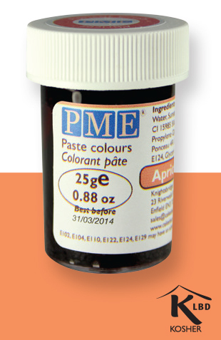Aprikosen Gel-Farbe verwenden Sie zum Färben von Zuckerwaren wie essbaren Verzierungen für Geburtstagstorten. Gewicht 25 g.