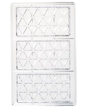 Professionelle Form für Schokolade von der italienischen Firma Martellato besteht aus Polycarbonat, also aus dem Material, das am besten für die Herstellung von Pralinen und Schokoladentafeln geeignet ist. Polycarbonat-Formen sind fest und beim Ausgießen der Schokolade und zugleich ihrer Ausrichtung bewegt sich die Form nicht. Eine feste Form liegt gut in der Hand und biegt sich nicht. Dies ist wichtig bei der Erstellung der Schale, der Füllung und dem abschließenden Verschließen der Schokolade. Die fertige Schokolade lässt sich leicht herausnehmen. Polycarbonat-Formen lassen sich auch gut reinigen. Die Form hat 3 Stück Tafeln mit den Abmessungen 138x72x11mm und einem Gewicht von 80 g.