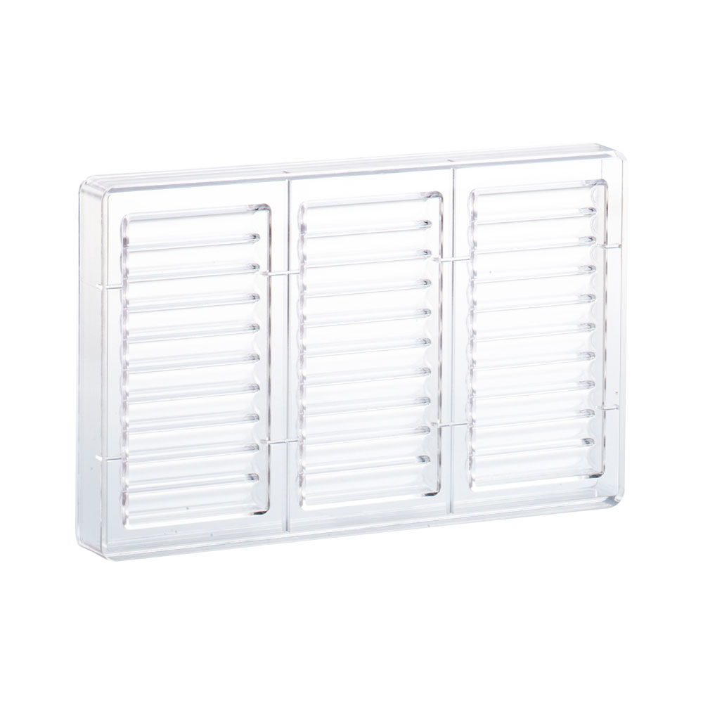 Polycarbonatformen für Schokoladentafeln mit geometrischen und grundlegenden Linien, zur Interpretation aktueller Trends. Aus Polycarbonat hergestellt, das das einfache Herausnehmen der fertigen Schokolade ermöglicht. Produktgröße: 275 x 175 mm