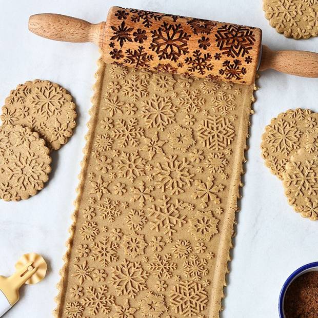 Verzierter Teigrolle mit Motiv einer Schneeflocke