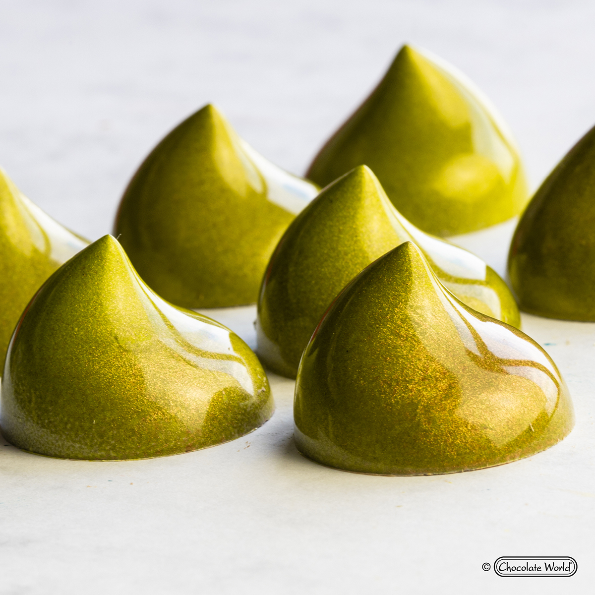Polycarbonatform zur Herstellung perfekter Schokoladenpralinen. Diese hochwertige europäische Form ist einfach zu verwenden, Ihre Schokolade wird eine glänzende und glänzende Oberfläche haben und sich leicht lösen. Um farbige Schokoladenstücke zu erhalten, tragen Sie die Form mit einer dünnen Schicht farbigen Kakaobutter auf, bevor Sie sie mit Schokolade füllen. Das Design dieser Form wurde von Vivian Zhou entworfen. Abmessungen der Form: 275x135x24mm.