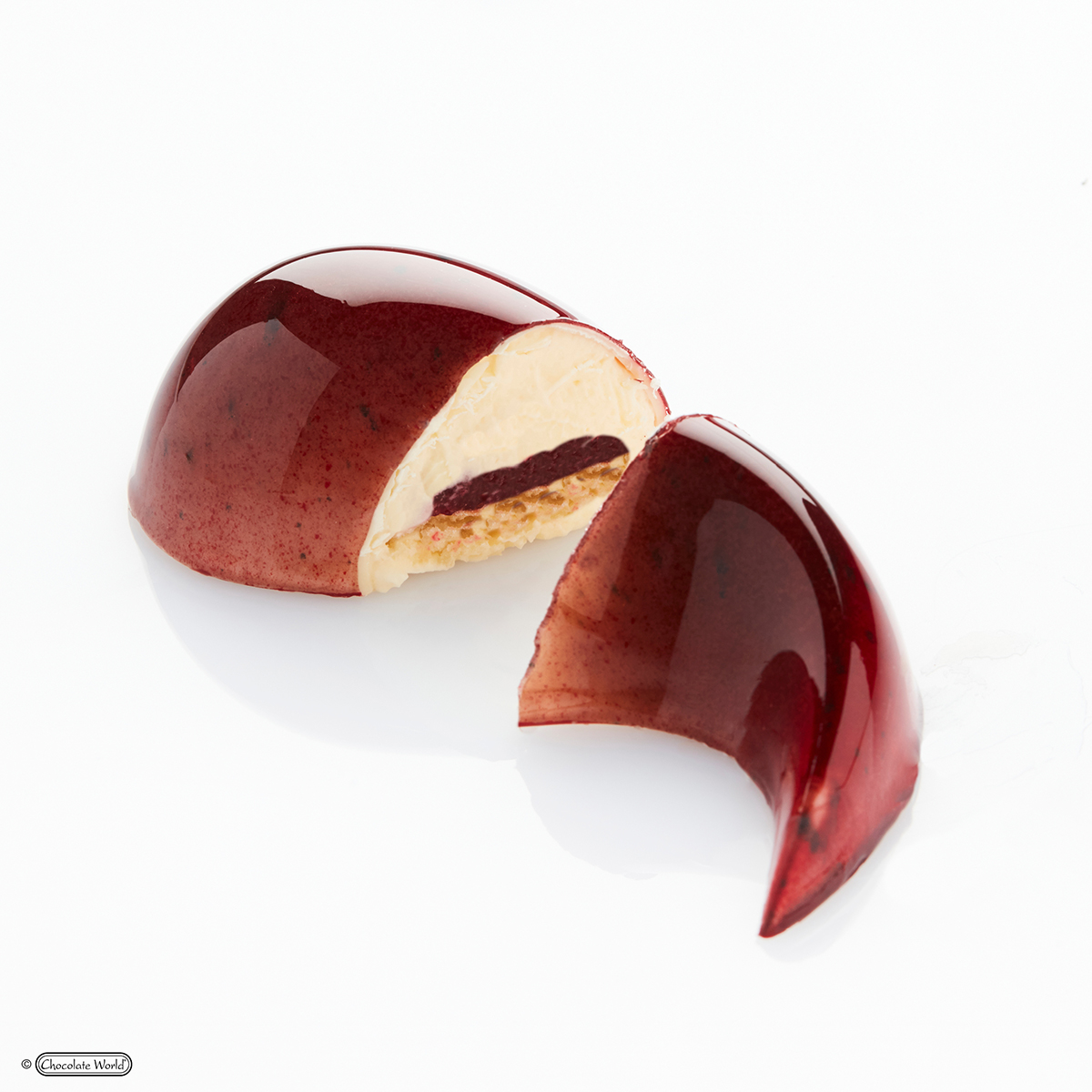 Polycarbonatform für die Herstellung perfekter Schokoladenpralinen. Diese hochwertige europäische Form lässt sich einfach verwenden, Ihre Schokolade wird eine glänzende und glatte Oberfläche haben und sich leicht lösen lassen. Um bunte Schokoladenstücke zu erhalten, tragen Sie eine dünne Schicht farbigen Kakaobutter auf die Form auf, bevor Sie sie mit Schokolade füllen. Das Design dieser Form ermöglicht das Formen perfekter Figuren mit sauber bearbeiteten Linien.