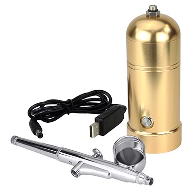 PME befreit Ihre Kreativität mit dem leichten tragbaren Airbrush-Kit, das Sie überall hin mitnehmen und verwenden können! Einfache Anwendung und Bedienung. Der Airbrush ist ein hochwertiger tragbarer Kompressor mit einer Leistung von 11 PSI für eine gleichmäßige Abdeckung Ihrer Torten. Der Airbrush verfügt über einen Gravitationsbehälter und eine schöne goldene Farbe. Die Laufzeit liegt bei etwa 50 Minuten und er kann bequem in ca. 1,5 Stunden über das beigefügte USB-Ladekabel (90 cm, 7,4 V) aufgeladen werden. Sie können über eine Steckdose, einen Computer/Laptop oder sogar eine Powerbank aufladen. Die Airbrush-Pistole hat einen einfachen Hebel oben für perfekte Kontrolle und einen leicht nachfüllbaren Tank, der direkt an die Kompressoreinheit geschraubt wird.