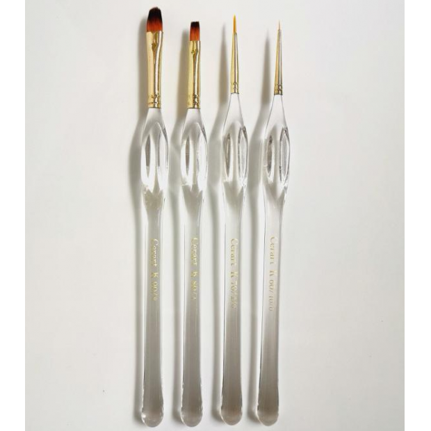 Mit diesem Pinselset können Sie jede Oberfläche auf Ihrer Torte oder Süßigkeit bemalen. Die kleineren Pinsel sind ideal, um Augen auf Figuren zu malen. Dank des dünnen Pinsels wirkt das Aussehen der Figuren sehr realistisch. Bei Blumen verwenden Sie den Pinsel, um die kleinen Teile der Blütenblätter zu zeichnen und zu schattieren, ebenso wie die Blütenblätter. Die größeren Pinsel sind ideal für die Arbeit mit Süßwaren, zum Beispiel beim Verzieren von Marzipanhäusern. Die Pinsel liegen dank des speziellen Griffs gut in der Hand, und nach längerem Gebrauch verhindert diese Form Schmerzen in der Hand. Das Set enthält 4 Pinsel in verschiedenen Größen.