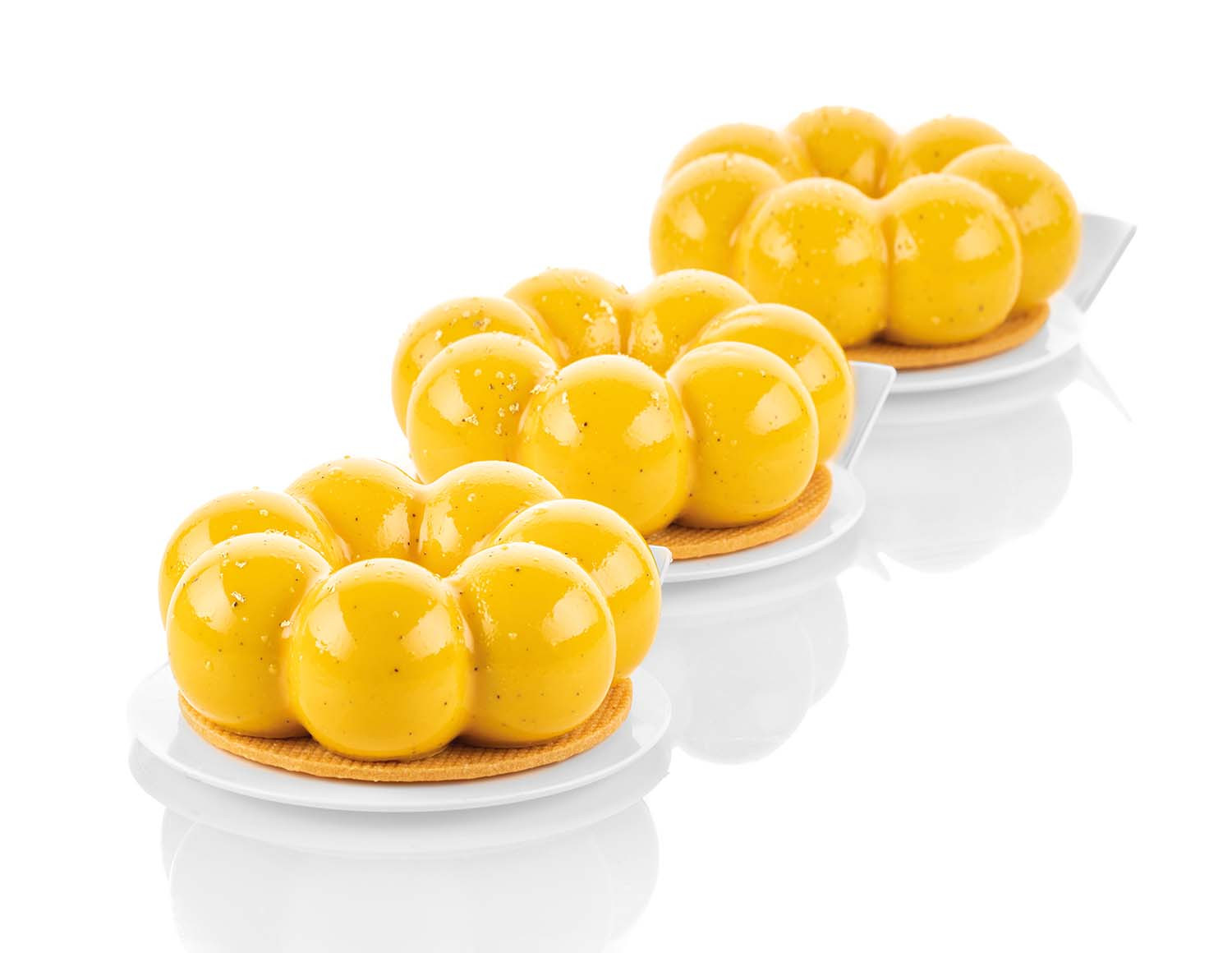 Forme für Trüffel in Kronenform, entworfen in Zusammenarbeit mit der Konditorin Carmine Di Donna, ist dank der Eleganz der Perlen, aus denen sie besteht, darauf ausgelegt, ein raffiniertes belegtes Dessert oder überraschende einzelne Portionen zum Dekorieren zu schaffen. Geliefert mit einem funktionsfähigen Kunststoff-Ausstecher, der es ermöglicht, originelle Dekorationen und tragende Basen zu erstellen. Carmine di Donna ist eine italienische Konditorin, die es versteht, auf hervorragende Weise traditionelles Gebäck mit modernem Backwerk zu kombinieren und so einzigartige Desserts zum Leben zu erwecken. Im Jahr 2015 wurde sie Küchenchef der Konditorei in dem mit mehreren Sternen ausgezeichneten Restaurant des Küchenchefs Gennaro Esposito Torre del Saracino, und 2017 trat sie der prestigeträchtigen Accademia Maestri Pasticceri Italiani (AMPI) bei. Im Jahr 2020 wurde sie im Guide Identità Golose als „Bester Konditor des Jahres 2020“ ausgezeichnet. Heute arbeitet sie als Beraterin für Unternehmen, Konditoreien und Kochschulen. Forma für Trüffel Eclair75 von Silikomart Professional hat 8 Vertiefungen à 75 ml und ist darauf ausgelegt, elegante, zeitlose Kreationen mit Charme herzustellen.