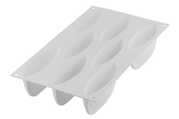 Professionelle Silikonform "Vela 100" von Silikomart. Durch ihre elliptische und aerodynamische Form begleitet Sie diese Form das ganze Jahr über bei Ihren verschiedenen Kreationen. Verzieren Sie Ihre Kuchen oder Gebäcke mit Spiegelglas oder samtigem Spritzspray für noch schönere Effekte. Neben der Form enthält dieses Set 1 Ausstecher. Abmessungen: 11,5 x 3,5 cm / Höhe 5,7 cm, Volumen: 8 x 100 ml / insgesamt 800 ml. Anwendung: backofentauglich und gefrierschranktauglich von -60°C bis +230°C. Mikrowellengeeignet und spülmaschinenfest.