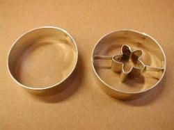 Im Set finden Sie einen glatten Kreis und einen Kreis mit einer Blütenmitte. Das Set eignet sich zur Zubereitung von zusammengeklebtem Gebäck. Ausstechformen für Plätzchen sind aus verzinntem Blech hergestellt.