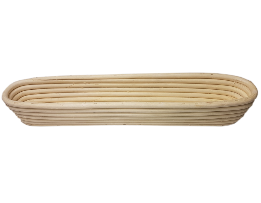 Ein Brotteigkorb für die Herstellung von hausgemachten Baguettes. Er eignet sich ideal zur Zubereitung von Brotteig, kann zum Aufbewahren des Teigs oder zu dekorativen Zwecken verwendet werden. Dank seiner Form ermöglicht er es Ihnen, einen traditionellen Laib vorzubereiten. Laibkorb 1,2 kg, Sie benötigen etwa 600 g Mehl. Abmessungen 44 x 8 x 6 cm..