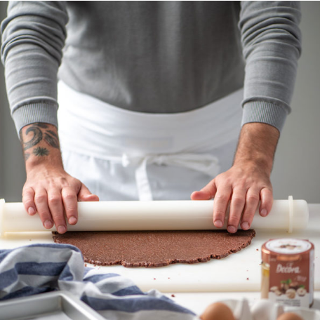 Rolle mit Abmessungen 33 x 4,5 cm zur einfachen Ausrollung von Back- oder Modeliermasse.