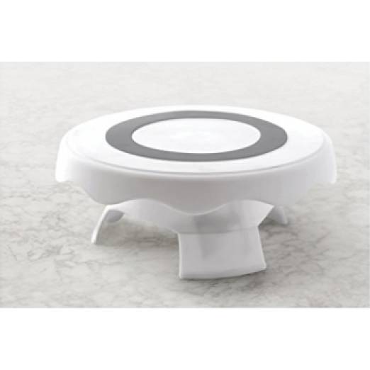 Geben Sie Ihren Kuchen eine neue Richtung mit dieser Wilton-Drehunterlage mit verstellbaren Beinen. Die drehbare Platte hat ausgeschnittene Kanten, die nicht nur dekorativ sind, sondern dem Dekorateur auch natürlichen Platz geben, damit er beim Arbeiten die Hand ablegt, was das Drehen erleichtert. Die verstellbaren Beine bieten dem Dekorateur zwei Höhen, und der Zugstopp sorgt für eine einfache Arretierung, um die Beine sicher an Ort und Stelle zu halten. Die Unterlage ist außerdem mit einer weichen Kante versehen, um die Torte am Ort zu halten. Geeignet für Kuchen mit einem Durchmesser von 28 cm oder kleiner.