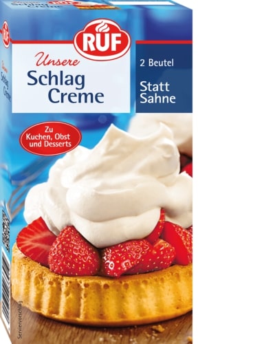 Schlagsahne mit Schlagsahne existiert bereits seit den Tagen unserer Großmütter. Während des Krieges war es schwierig, Sahne zu bekommen, also mussten wir schnell eine Alternative schlagen. Heute wird Schlagsahne immer noch verwendet, aber häufiger als Ersatz für Sahne, der hilft, den Cholesterinspiegel zu senken und weniger Kalorien hat. Einfach mit kalter Milch mischen. Je nach Konsistenz können Sie die Festigkeit anhand der Menge der verwendeten Milch variieren und feste Spitzen oder leichten Schaum erzeugen. Diese Sahneglasur ist genauso leicht wie Federn und unwiderstehlich köstlich mit Obst, Kuchen, Eis, Schlagsahne als feine Sauce für Kaffee oder zur Verbesserung köstlicher Desserts und Cremes. Außerdem benötigen Sie ca. 125 ml Milch. Zubereitung: Geben Sie die gewünschte Menge kalter Milch in eine Schüssel. Fügen Sie den Inhalt des Beutels hinzu und schlagen Sie ihn mit einem elektrischen Handrührgerät (Schlag- oder Rührgerät) kurz auf der niedrigsten Stufe, dann auf der höchsten Stufe 2–3 Minuten lang.