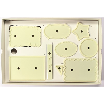 Erstellen Sie mit diesem Satz geometrischer Ausstechformen einfache, aber effektive Formen. Diese Ausstechformen können effiziente Mosaike erstellen, bei der Hinzufügung von Details zu Modellen helfen, abstrakte Blüten kreieren und exakt maßgenaue Formen schneiden, damit Ihre Kreationen einfach perfekt werden. Der Satz enthält eine Reihe von 17 kleinen Ausstechformen in Form von Stern, Scrollen, Ellipsen, Bilderrahmen usw.
