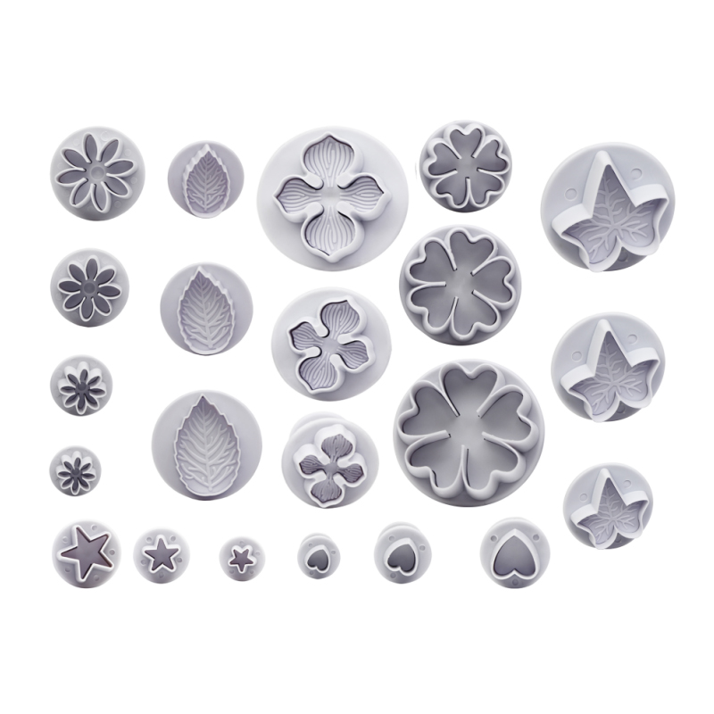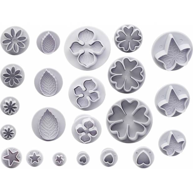 Gusspressenformen sind eine hervorragende Hilfe, um präzise Formen aus Marzipan, Fondant oder Blütenpaste zu erstellen. Das Set enthält 22 Stück verschiedene Blätter und Blüten für essbare Dekorationen.