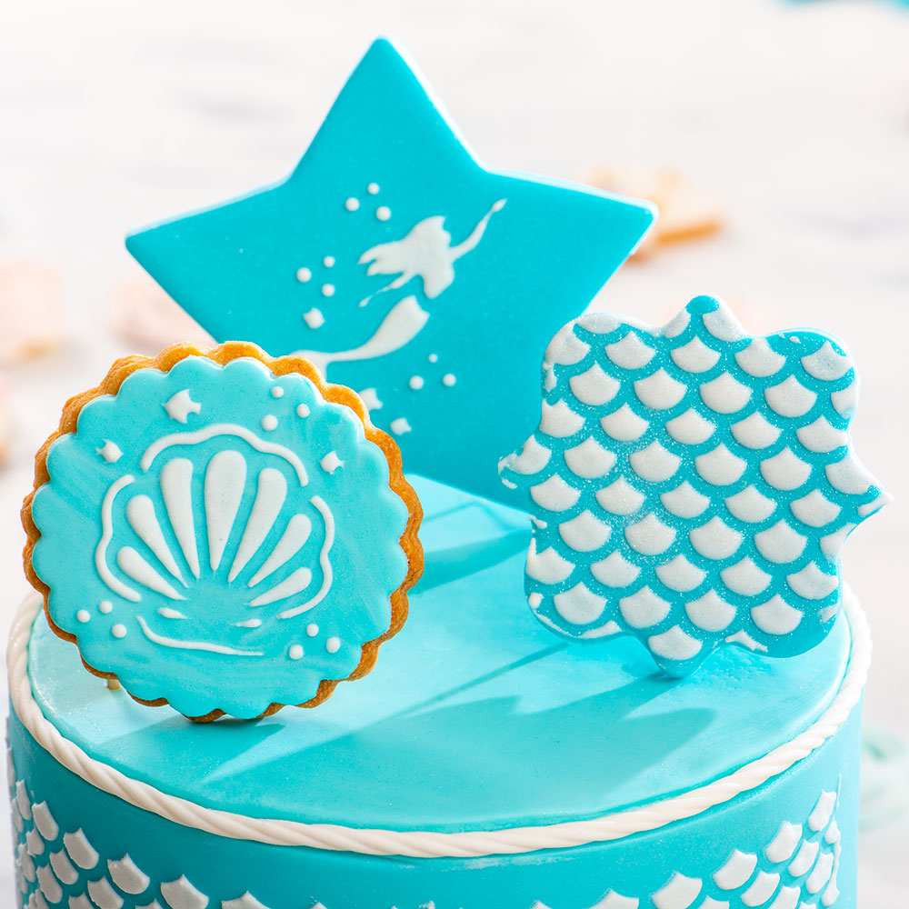 Überrasche deine Lieben, indem du hübsche Cookies oder Tortendekorationen zum Thema Fische, Meer und kleine Meerjungfrauen erstellst. Diese schöne Vorlage ist ideal zum Verzieren von Keksen oder sogar einer Torte, z. B. mit Royal-Icing oder Puderzucker. Enthalten: 1 lebensmittelechte Kunststoffvorlage 25 x 10 cm.